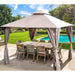 The Solvento Luxe Mesh Pavilion offers a seamless blend of style and functionality. This elegant outdoor structure features a double-vented polyester canopy with protective mesh walls, making it perfect for relaxed lounging or hosting guests in any backyard or garden. With its neutral taupe finish and breathable enclosure, it provides an inviting and shaded retreat during warm afternoons.